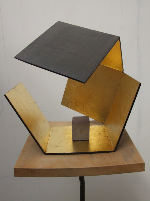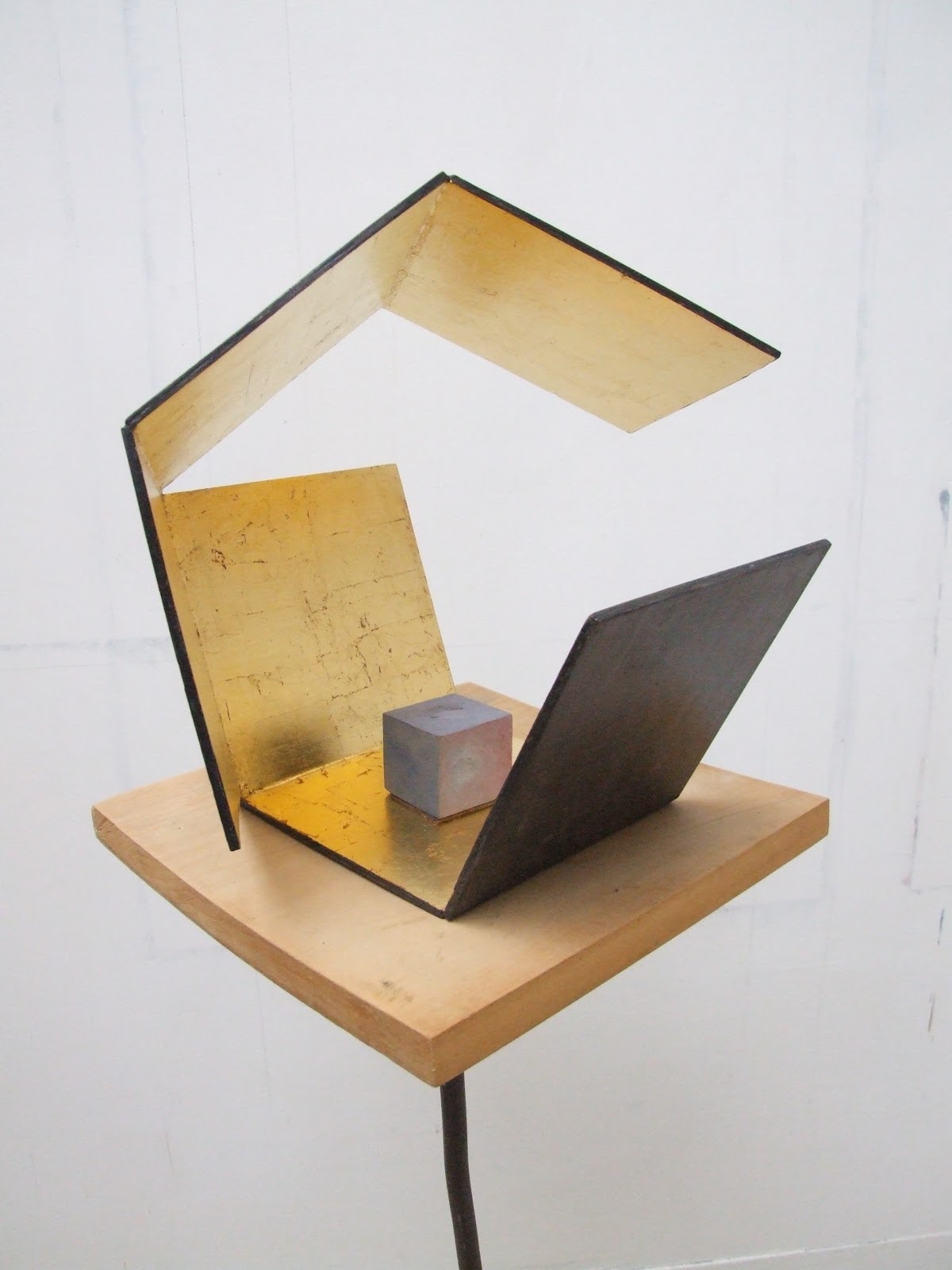 3 Cubes et 2 boîtes dorées dans l’atelier